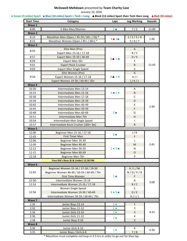 START TIMES & LAP COUNTS: