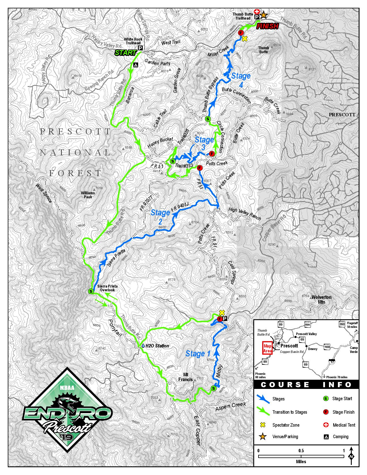 * Note – All racers will begin at White Rock Trailhead and finish at Thumb Butte Trailhead for post race festivities and awards. White Rock Trailhead is 1.5 miles up the road from Thumb Butte.
